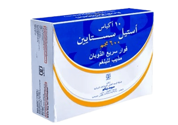 - يحتوي كل كيس من أستيل سستايين فوار سريع الذوبان 600 مجم على :